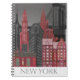 "New York Elevations by Night Red" by Fab Funky. Features popular New York City landmarks at nighttime in a red and grey colour scheme.