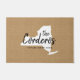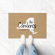 Modern farmhouse personalised doormat with your family name inside your state map. Faux burlap canvas texture background. Click Customise It to add your own text and images and create a unique one of a kind design!