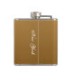 The flask itself is fine. It’s a cheap flask, obviously bought in bulk, however am prepared to overlook that. Given that it is a personalized item, I would have liked to have seen gift boxing instead of the generic packaging. Terrible printing, and/or quality. It’s a cheap, tacky vinyl. It is not cut straight and is also applied in a way that it is overhanging the bottom, causing the glue to catch on items and it will eventually roll and tear, damaging the wrap.