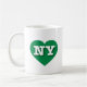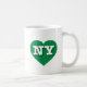 This mug features a vibrant green heart containing the bold, white, upper case letters NY, the official abbreviation for New York, the empire state.