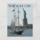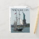 Travel postcard featuring a scenic photo image view of New York Harbour boats and the Statue of Liberty. Select from matte or glossy style card.