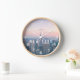 New York Manhattan Text Pink Blue Skyline Sunset Clock