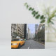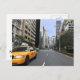 New York is famous for it's yellow taxi cabs which you can see on this New York street.