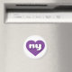 This magnet features a vibrant purple heart containing the bold, white, rounded lower case letters ny, a playful abbreviation for New York, the empire state.