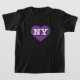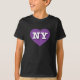 This t-shirt features a vibrant purple heart containing the bold, white, upper case letters NY, the official abbreviation for New York, the empire state.