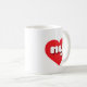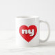 This mug features a vibrant red heart containing the bold, white, rounded lower case letters ny, a playful abbreviation for New York, the empire state.