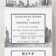 New York, Empire State Building, modern all in one wedding invitations. Trendy, black and white, skyline wedding invitations. Customise with your details. Order in time to avoid a disappointment.