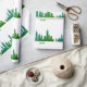 New York City skyline wrapping paper. Green and white, Big Apple, Manhattan, NYC.