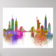 New York Skyline Rainbow Bright by Fab Funky. Features famous landmarks of New York City in a watercolor style using a rainbow of colours.