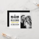 This modern Save the Date card if perfect for a New York wedding. It features a drawing of a New York inspired skyline. The poster styles letters add the to the theme. The black, white and grey colour palette with a touch of yellow completes the look. This card is perfect for a couple that lives in New York, loves New York, or will celebrate the wedding in the Big Apple. The look is modern and clean with a touch of humour.