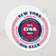 A bold, patriotic design featuring red, white, and blue evokes feelings of freedom, loyalty, and unity. The state name, "New York," is prominently displayed, surrounded by information about the capital, residents, region, time zone, and geographic coordinates. The backside is blank - leave as is or add your text by accessing the design tool. Perfect for national holidays and patriotic events.