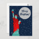 New York Statue of liberty Christmas winter Postcard. Custom Holiday cards with personalised message. Unique drawing design with Santa outfit and snow flakes. Also great for party invites.