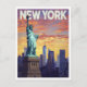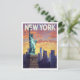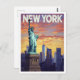 New York Travel Poster: Statue of Liberty Sunset Postcard