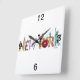Original watercolor paintings by Anne Ormsby of scenes from New York City make the letters of the city name on this fun clock.