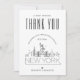 A special thank you flat card tailored to your wedding in the beautiful city of New York City, New York. It features a stylised skyline of the city on the front of the card. On the inside is a spot for your own unique message and an optional photo. Use the customisation functions to change the photo filter to colour, and to resize it as needed. All elements of this item are unlocked and adjustable, so have fun being creative!