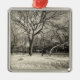 This beautiful black and white fine art photo features a winter landscape scene in the middle of Tompkins Square Park in the East Village, a neighbourhood in New York City. Snow has fallen onto the ground and the tree branches are also heavy with snow. A man walks his dog in the distance. The vintage feel of this photo with it's sepia tones gives it a timeless and classic look.