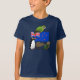 100% cotton so perfect for summer, It is a nicely designed t-shirt, the fabric is soft and the seams finished well, the body of the t shirt has no side seams. I bought a medium size for my two grandsons, aged 9 and 8 it will be slightly big on them but I would rather that than too small