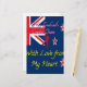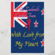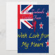 The artwork features a stylised representation incorporating elements associated with New Zealand cricket. A portion of the New Zealand flag is visible in the upper left corner. The text "New Zealand's Cricket Team" is prominently displayed, along with a silhouette of a cricketer in action. Three stylised stars, reminiscent of those on the New Zealand flag, are scattered across the design. The phrase "With Love from My Heart" is placed at the bottom, conveying a personal message of support.