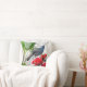 A cushion with a New Zealand native bird, the Kakako, on it, along with native plants and flowers.