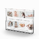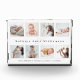 Commemorate the arrival of your beautiful new baby with our custom photo collage photo block that you'll cherish forever. Special personalised new baby birth photo collage plaque to display your own new baby photos and memories. Our design features a simple 8 photo collage grid design with the baby's name, monogram, date of birth, and birth stats. Each photo is framed with a simple faux gold border.