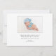 Announce your baby's arrival with our simple birth announcement, featuring a horizonal photo of your little one with their first name beautifully overlaid in grey sans serif font. You can personalise the announcement with your baby's middle and last name. On the back, there's space for an additional picture, along with birth statistics and a personal message.