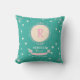 Personalised baby pillow keepsake with monogram and birth details green and pink on heart background, a special custom keepsake gifts.