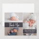 The modern and unique "Thank You" handlettering type on chalkboard backgrounds adds a touch of elegance and sophistication to the cards, making them truly stand out. The combination of the charming photo collage and stylish typography creates a visually appealing design that is sure to make an impression.