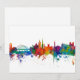 Watercolor art print of the skyline of Newcastle, England, United Kingdom