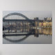 A misty day on the river Tyne with reflections of the Tyne Bridge and Newcastle Quayside