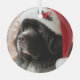 Newfie Pup Wearing a Santa Hat Glass Tree Decoration