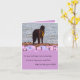 An adorable photograph of a Newfoundland Dog adorns the front of this card. A pink background with a retro design and text that reads: "On your birthday try to remember: A smile is happiness you'll find right under your nose" Inside customizable text reads: "No Birthday card holds more love than this 'cause it's mailed with a hug and it's sealed with a kiss!".