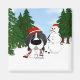 Unique Newfoundland Christmas design. Newfie with a bit of snow on his nose and a pool of drool at his paws. Irritated snowman looks on. To ward off the cold the Newfoundland has on a scarf and hat that are the colours of his country.