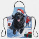 Newfoundland Running in Snow with Christmas Hat Apron