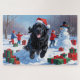 Newfoundland Running in Snow with Christmas Hat Jigsaw Puzzle