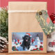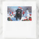 Newfoundland Running in Snow with Christmas Hat Rectangular Sticker