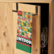 Newfypoo Countdown Christmas Advent Calendar Dog kitchen towel features a watercolor of a Newfypoo with a Christmas hat and a Christmas red scarf. Funny design for Dog Lovers!
