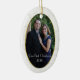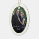 Custom photo Christmas tree ornament done in an oval shape. A pale white lace background has a gold framed oval cut out photo area, and text on the bottom reads, Our First Christmas 2010. Personalise by adding your own photograph and changing the text if you want anything different. Great first ornament for the newly weds and makes a nice gift.