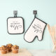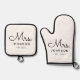 For the bride and groom, this black and white white oven mitt & pot holder features "Mrs." in a modern, elegant script font along with a last name and established date. This is a perfect custom bridal shower or wedding gift!