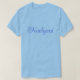 Basic Classic T Shirt in Light Blue Colour printed with Newlywed in Navy Blue text typography lettering and digital graphic design by TheFabricSeal print on demand shop at Zazzle.com #ZazzleMade https://www.zazzle.com/store/thefabricseal TheFabricSeal©️Original.