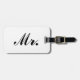The perfect luggage tag for your honeymoon and new life together! Celebrate your new marriage with matching "Mr." and "Mrs." luggage tags (sold separately)! Show off your new love and marital status together with this cute and sophisticated luggage tags. Mrs. tag available here: http://www.zazzle.com/newlywed_luggage_tag_mrs-256913740214686620