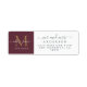 Chic, modern and simple return address label for the newlywed couple features the text Mr and Mrs in elegant script calligraphy, with a gold monogram on a burgundy background. Simply add your names, monogram and address. Exclusively designed for you by Happy Dolphin Studio!