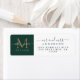 Chic, modern and simple return address label for the newlywed couple features the text Mr and Mrs in elegant script calligraphy, with a gold monogram on a dark green background. Simply add your names, monogram and address. Exclusively designed for you by Happy Dolphin Studio!