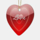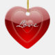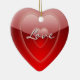 Lovely red heart shaped decorative ornament, with graphics of shinny red on red hearts and text reading Love. On the reverse is solid red and text in white. Personalise by adding your names and wedding date for a lovely romantic ornament you can use on the Christmas tree or anywhere else you want year around.