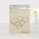 Newlyweds beach hearts in sand with surf card