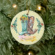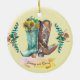 Newlyweds Rustic Wedding Cowboy Boots Watercolor Ceramic Ornament