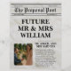 newspaper save the date card, fun black and white invite, unique photo wedding announcement, vintage newspaper wedding invitation, funny engagement photo card, retro wedding save the date, custom newspaper style invitation, wedding announcement with photo, modern funny wedding stationery, personalised headline wedding card