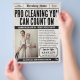 Clean up your marketing with this vintage newspaper-style flyer designed for home cleaning services. Featuring a classic, retro layout with bold headlines and easy-to-read text, this customisable flyer is perfect for promoting residential cleaning, maid services, and housekeeping specials. Stand out in your neighbourhood with timeless style and professional appeal.