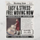 Make headlines with this vintage newspaper-style flyer designed for packing and moving services. Featuring a classic layout with bold headlines and customisable sections, this flyer is perfect for promoting your expert packing, loading, and moving offerings. Ideal for professional movers, relocation companies, and local moving specialists aiming to stand out with timeless style.