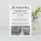 Say "Thank You" with timeless elegance! This unique newspaper-style wedding thank you card features your cherished photo and customizable headlines. Perfect for couples who want a memorable and personal touch after their big day.