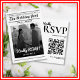 newspaper qr code rsvp card, modern wedding response insert, elegant black and white rsvp, digital rsvp wedding card, scan to rsvp invitation, wedding rsvp with qr code, unique editorial wedding stationery, tech-savvy rsvp card design, newspaper style wedding insert, printable wedding rsvp postcard